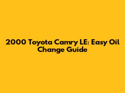 So there you have it! Changing the oil in your 2000 Toyota Camry LE is a straightforward process that can save you money and keep your engine running smoothly. By following these steps, you can ensure your Camry stays in top condition for years to come. Remember to always prioritize safety and dispose of used oil responsibly. Happy driving!