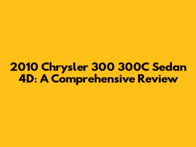 The 2010 Chrysler 300 and 300C sedan offer a compelling package of style, performance, and comfort. With its bold exterior design, spacious interior, and available V8 engine, the 300 stands out in the full-size sedan segment. While it's important to be aware of potential reliability issues and to conduct a thorough inspection before purchasing a used model, the 2010 Chrysler 300 can be a great choice for drivers who appreciate American luxury and a commanding road presence. If you're looking for a stylish and comfortable sedan with plenty of power, the 2010 Chrysler 300 is definitely worth considering. The 2010 Chrysler 300 is a car that is sure to turn heads. The car's bold styling and its powerful engine make it a popular choice for drivers who want to make a statement. The 2010 Chrysler 300 is a car that is both stylish and practical. The car's spacious interior and its comfortable ride make it a great choice for families and commuters alike. The 2010 Chrysler 300 is a car that is sure to please. The car's blend of style, performance, and comfort make it a popular choice for drivers of all ages. The 2010 Chrysler 300 is a car that you will be proud to own. The car's reputation for quality and its timeless design make it a great investment. The 2010 Chrysler 300 is a car that will provide you with years of reliable service. The car's robust construction and its well-engineered components make it a car that you can depend on.