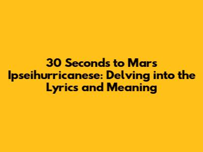 Hey guys! Ever get a song stuck in your head, and you just have to know what it's all about? Well, that's the feeling I get with 30 Seconds to Mars' track "Ipseihurricanese." This song, with its intriguing title and atmospheric soundscape, is more than just a collection of cool sounds – it's a journey into the heart of human experience. Let's dive deep into the lyrics, the meaning, and all the cool stuff surrounding this epic tune. We'll explore the song's context within the band's discography, the possible interpretations of the lyrics, and the overall impact it's had on fans around the world. Get ready to have your mind blown (in a good way!), because "Ipseihurricanese" is packed with layers of meaning, emotion, and artistic flair. Are you ready?
