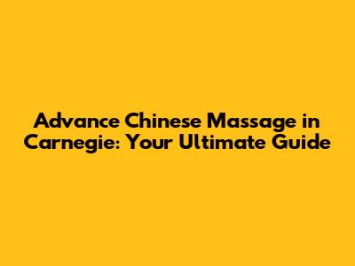 Advance Chinese Massage In Carnegie: Your Ultimate Guide