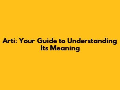Arti: Your Guide To Understanding Its Meaning