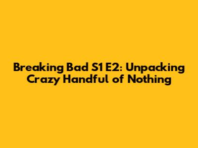 Breaking Bad S1 E2: Unpacking 'Crazy Handful Of Nothing'