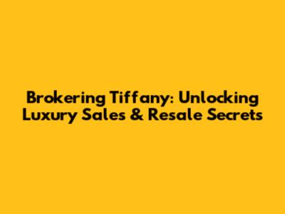 Brokering Tiffany: Unlocking Luxury Sales & Resale Secrets