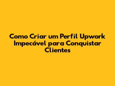 Como Criar Um Perfil Upwork Impecável Para Conquistar Clientes