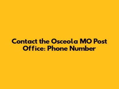 Hey there, folks! If you're looking for the Osceola Missouri post office phone number, you've landed in the right spot. We know how frustrating it can be when you just need to quickly ask a question, check on a package, or find out about specific services, and you don't want to have to drive all the way there just to get a simple answer. That's where having the right contact information comes in super handy. In this article, we're going to break down exactly how you can get in touch with the Osceola Post Office, making your life a whole lot easier. Whether you're a long-time resident or just passing through, knowing how to connect with your local post office is a fundamental part of navigating daily life. We'll cover the direct phone number and also touch on other ways you might be able to get the information you need, just in case. So, grab a coffee, settle in, and let's get you connected!