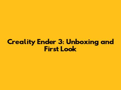 Creality Ender 3: Unboxing And First Look
