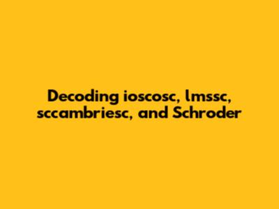 Decoding Ioscosc, Lmssc, Sccambriesc, And Schroder
