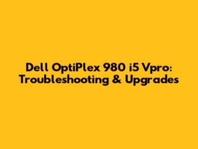 Dell OptiPlex 980 I5 Vpro: Troubleshooting & Upgrades