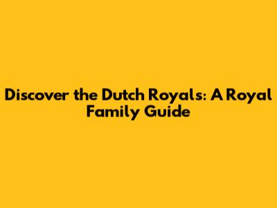 Discover The Dutch Royals: A Royal Family Guide