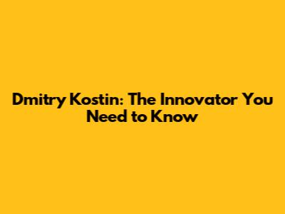 Dmitry Kostin: The Innovator You Need To Know