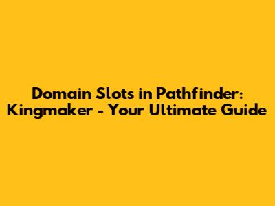 Domain Slots In Pathfinder: Kingmaker - Your Ultimate Guide