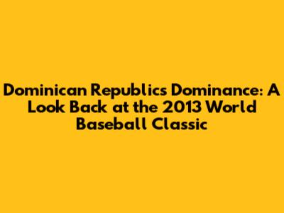 The Road to Glory: Unveiling the Dominican Republic's WBC 2013 Campaign