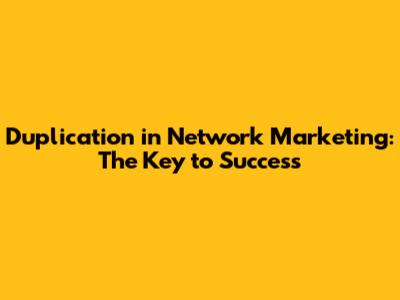 Duplication In Network Marketing: The Key To Success
