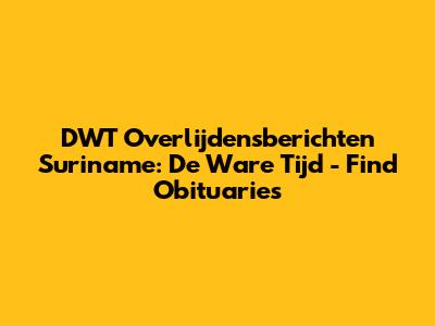 DWT Overlijdensberichten Suriname: De Ware Tijd - Find Obituaries