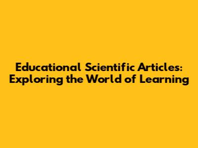 Educational Scientific Articles: Exploring The World Of Learning