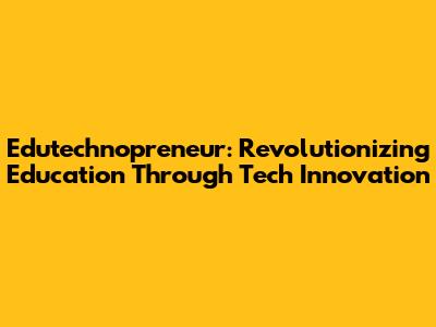Edutechnopreneur: Innovating Education With Technology