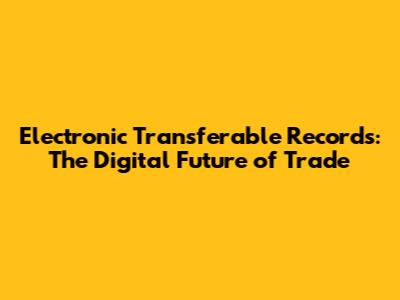 Electronic Transferable Records: The Digital Future Of Trade