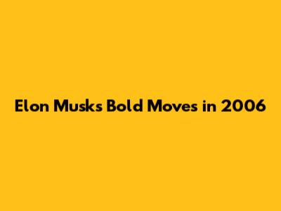 Elon Musk's Bold Moves In 2006
