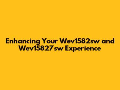 Enhancing Your Wev1582sw And Wev15827sw Experience