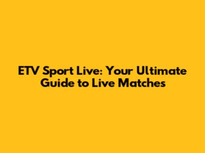 ETV Sport Live: Your Ultimate Guide To Live Matches
