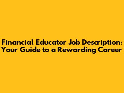 Financial Educator Job Description: Your Guide To A Rewarding Career
