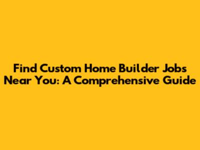 Find Custom Home Builder Jobs Near You: A Comprehensive Guide