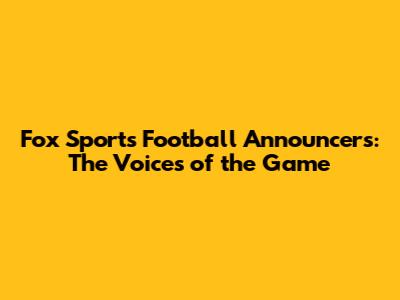 Fox Sports football announcers play a crucial role in bringing the excitement and analysis of the game to viewers. These commentators, analysts, and reporters provide insights, play-by-play commentary, and sideline reports that enhance the viewing experience. Knowing the key figures behind the microphones can deepen your appreciation for the broadcasts.