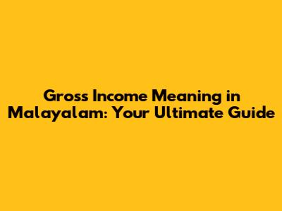 Gross Income Meaning In Malayalam: Your Ultimate Guide
