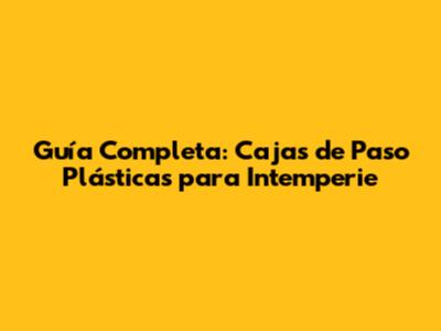 Guía Completa: Cajas De Paso Plásticas Para Intemperie