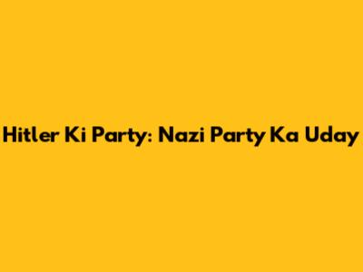 Hitler Ki Party: Nazi Party Ka Uday