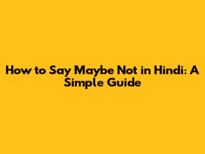 How To Say Maybe Not In Hindi: A Simple Guide