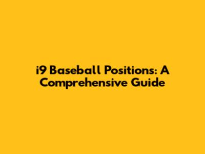I9 Baseball Positions: A Comprehensive Guide