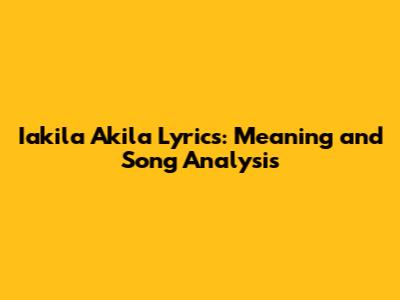 Iakila Akila Lyrics: Meaning And Song Analysis