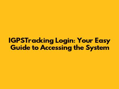 IGPSTracking Login: Your Easy Guide To Accessing The System