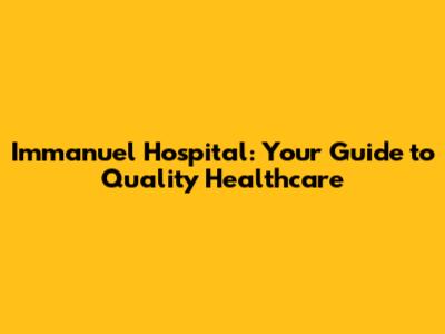 Planning a visit to Immanuel Hospital? Here’s what you need to know. Knowing the location, visiting hours, and contact information can make your visit smoother. Additionally, understanding the hospital’s policies can help you prepare better.