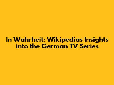 In Wahrheit: Wikipedia's Insights Into The German TV Series