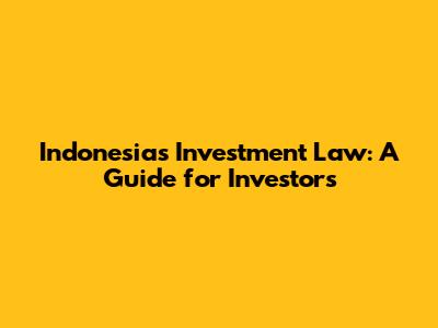 Indonesia's Investment Law: A Guide For Investors