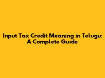 Input Tax Credit: Telugu Meaning & Guide