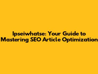 Ipseiwhatse: Unveiling The Secrets Of SEO Article Optimization
