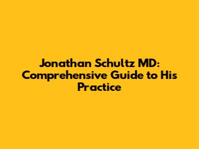 Jonathan Schultz MD: Comprehensive Guide To His Practice