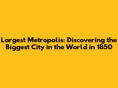Largest Metropolis: Discovering The Biggest City In The World In 1850