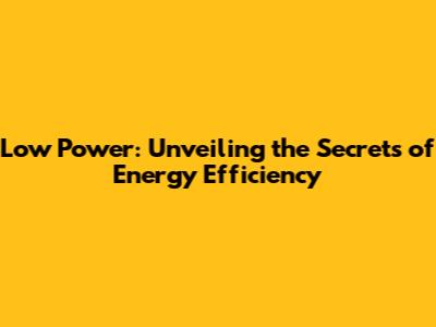 Low Power: Unveiling The Secrets Of Energy Efficiency