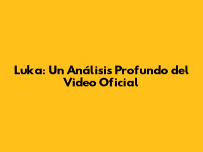 Luka: Un Análisis Profundo Del Video Oficial