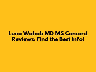 Luna Wahab MD MS Concord Reviews: Find The Best Info!