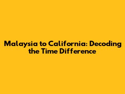 Malaysia To California: What Time Is It?