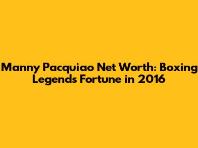 Manny Pacquiao Net Worth: Boxing Legend's Fortune In 2016