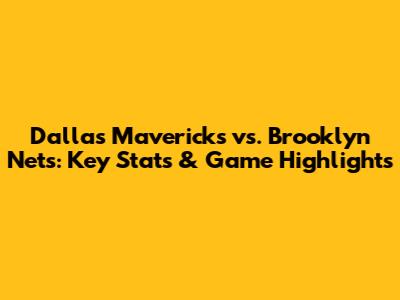 Mavericks Vs. Nets: Key Stats & Game Highlights