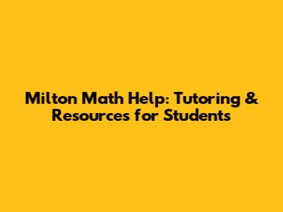 Essential Milton Math Resources Beyond Tutoring