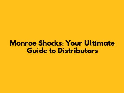 Monroe Shocks: Your Ultimate Guide To Distributors