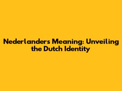 Unpacking the Term: What Does "Nederlanders" Really Mean?